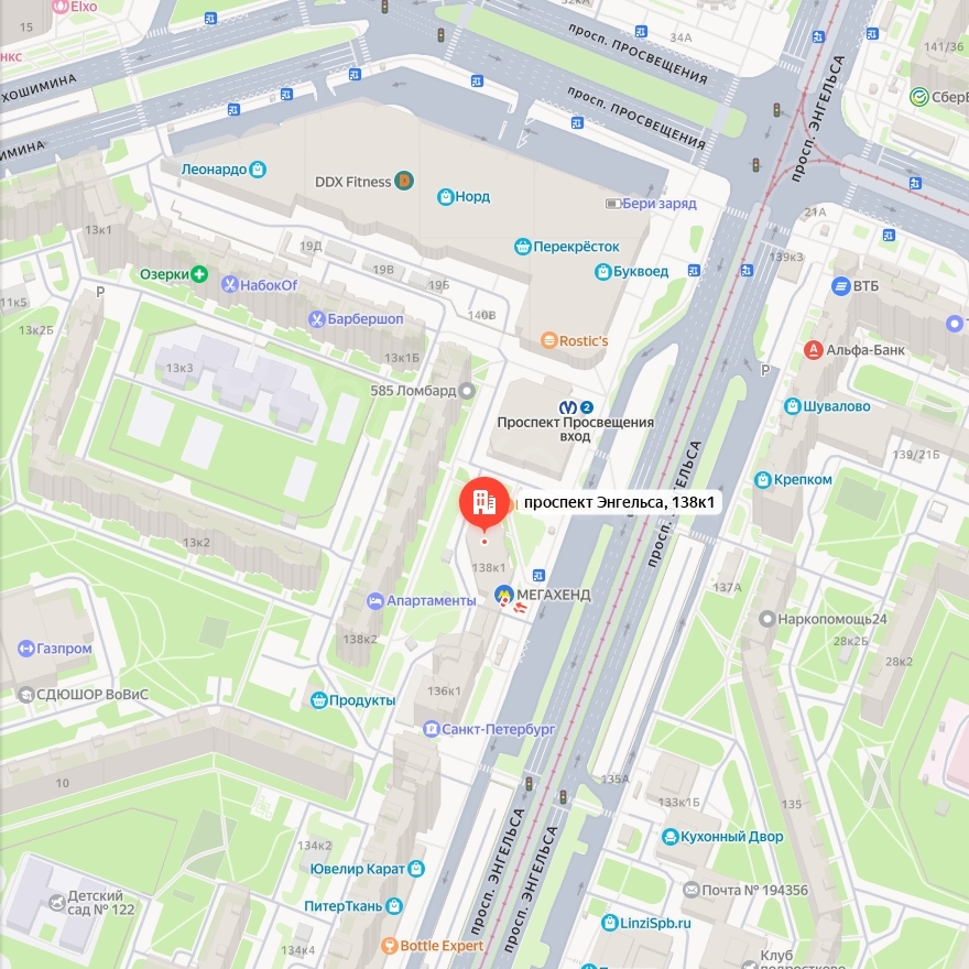 Адрес: г.Санкт-Петербург, проспект Энгельса, дом 138, корпус 1, литер А