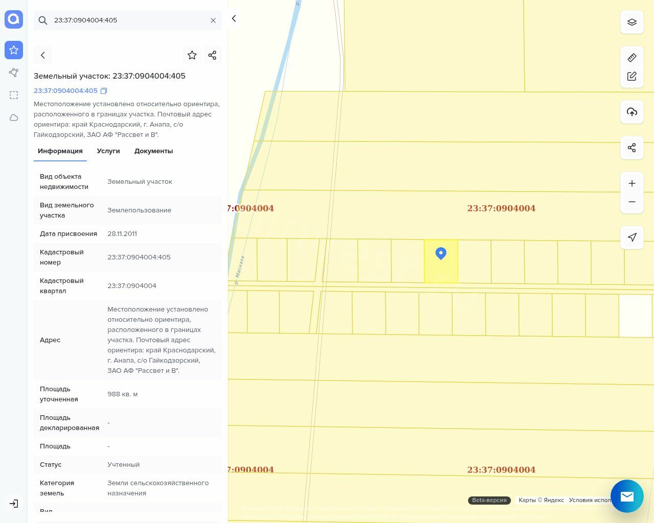 13 объектов группы "Земельный участок": Земельный участок, площадь 994 кв.м., назначение: земли сельскохозяйственного назначения, кадастровый (условный) номер: 23:37:0904004:394 Земельный участок, площадь 992 кв.м., назначение: земли сельскохозяйственного назначения, кадастровый (условный) номер: 23:37:0904004:395 Земельный участок, площадь 887 кв.м., назначение: земли сельскохозяйственного назначения, кадастровый (условный) номер: 23:37:0904004:399 Земельный участок, площадь 990 кв.м., назначение: земли сельскохозяйственного назначения, кадастровый (условный) номер: 23:37:0904004:398 Земельный участок, площадь 885 кв.м., назначение: земли сельскохозяйственного назначения, кадастровый (условный) номер: 23:37:0904004:400 Земельный участок, площадь 990 кв.м., назначение: земли сельскохозяйственного назначения, кадастровый (условный) номер: 23:37:0904004:397 Земельный участок, площадь 1745 кв.м., назначение: земли сельскохозяйственного назначения, кадастровый (условный) номер: 23:37:0904004:402 Земельный участок, площадь 987 кв.м., назначение: земли сельскохозяйственного назначения, кадастровый (условный) номер: 23:37:0904004:403 Земельный участок, площадь 985 кв.м., назначение: земли сельскохозяйственного назначения, кадастровый (условный) номер: 23:37:0904004:404 Земельный участок, площадь 988 кв.м., назначение: земли сельскохозяйственного назначения, кадастровый (условный) номер: 23:37:0904004:405 Земельный участок, площадь 990 кв.м., назначение: земли сельскохозяйственного назначения, кадастровый (условный) номер: 23:37:0904004:406 Земельный участок, площадь 991 кв.м., назначение: земли сельскохозяйственного назначения, кадастровый (условный) номер: 23:37:0904004:407 Земельный участок, площадь 995 кв.м., назначение: земли сельскохозяйственного назначения, кадастровый (условный) номер: 23:37:0904004:408