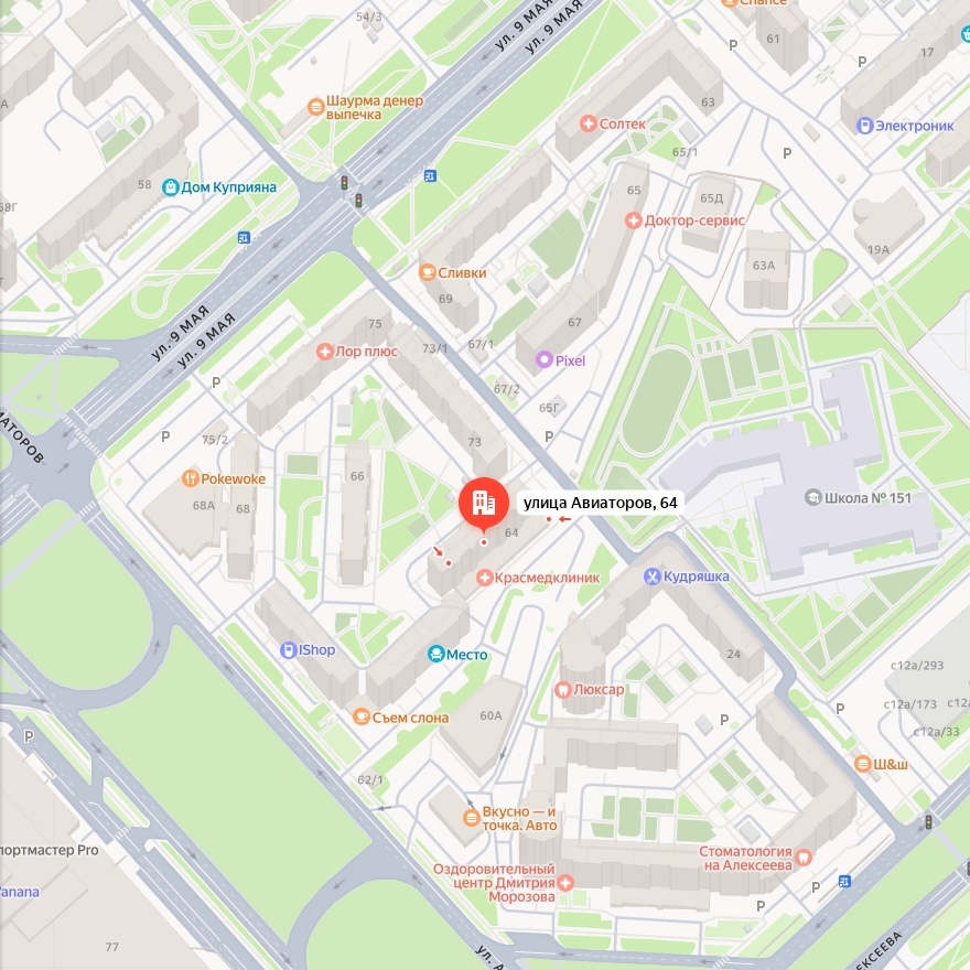 Адрес: Красноярский край, г. Красноярск, ул. Авиаторов, 64, пом.114 (подвал)