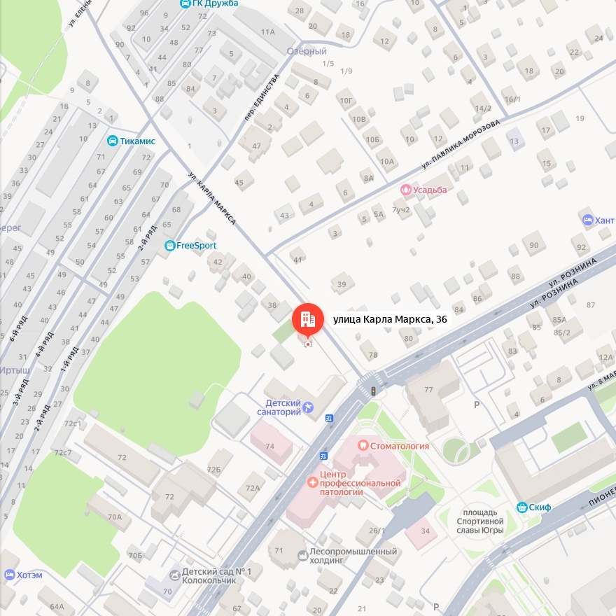 Адрес: Ханты-Мансийский автономный округ-Югра, г. Ханты-Мансийск, ул. Комсомольская, д. 36, ул. Карла-Маркса.
