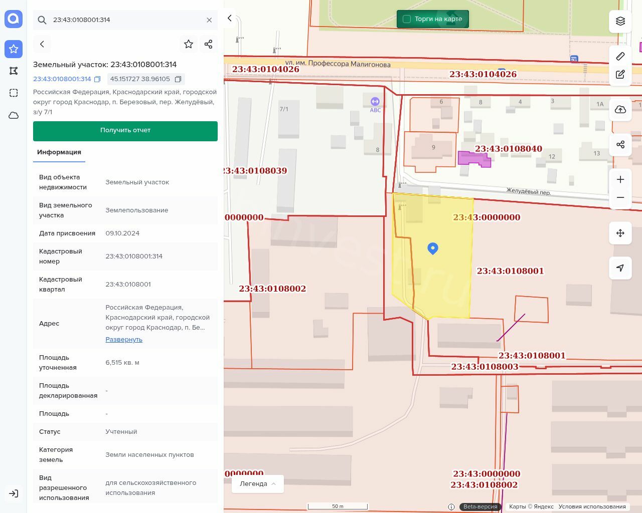 Адрес: Российская Федерация, Краснодарский край, городской округ город Краснодар, п. Берёзовый, пер. Желудёвый, 7/1(улице (пер.) п. 1-е отделение свинооткормочное хозяйства МУП Совхоз «Прогресс» 7/1).