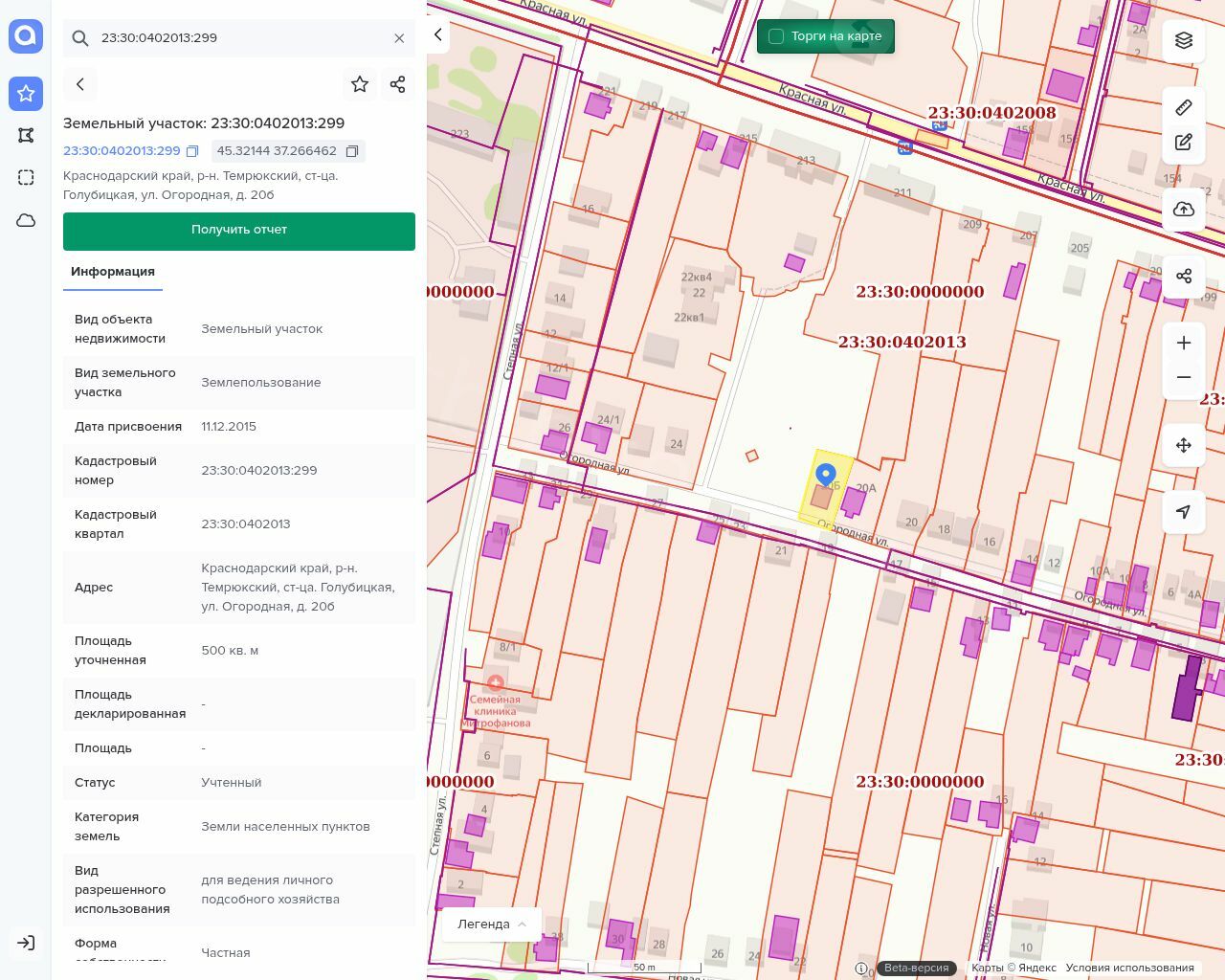 Земельный участок, площадью 500+/-9 кв.м., с кадастровым номером: 23:30:0402013:299