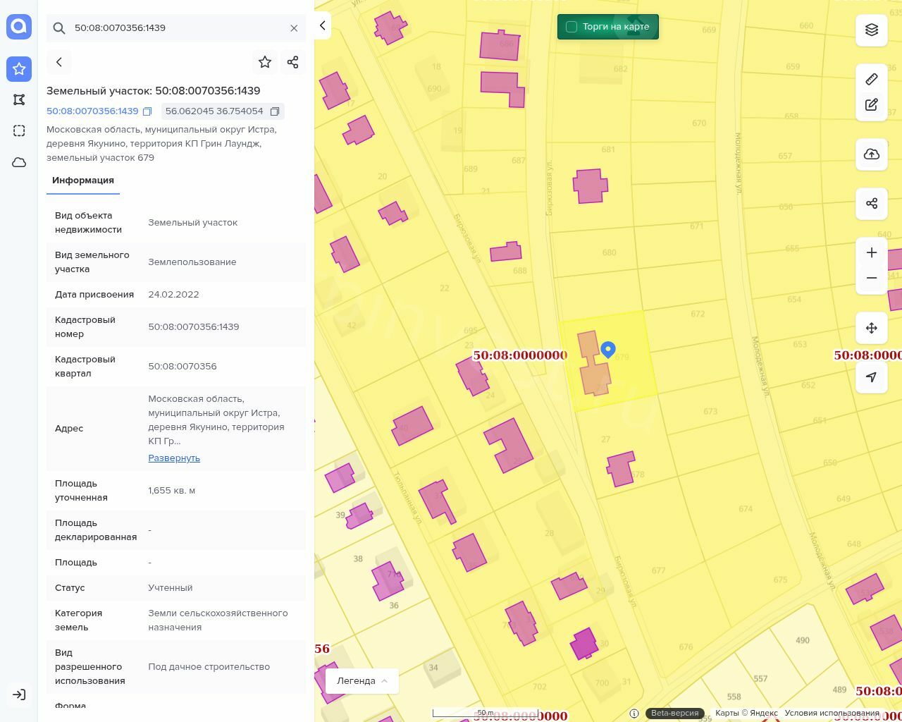 Адрес: Российская Федерация, Московская область, городской округ Истра, д. Якунино, территория КП Грин Лаундж, уч. 679.