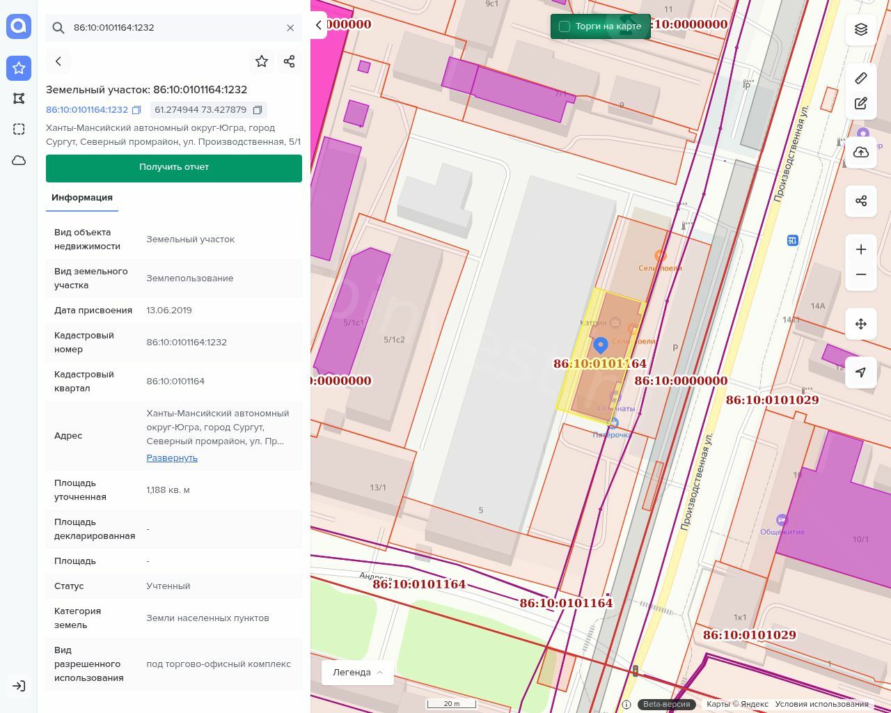 Земельный участок, категория земель: земли населенных пунктов, площадью 1188 +/- 12 кв.м., кадастровый №: 86:10:0101164:1232