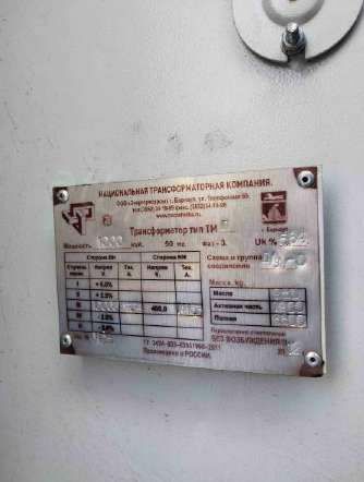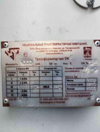 Трансформатор ТМГ № 0184 мощностью 1000 кВТ (инвентарный № БП- 000027, г/в 2021), марка ТМГ № 0184,