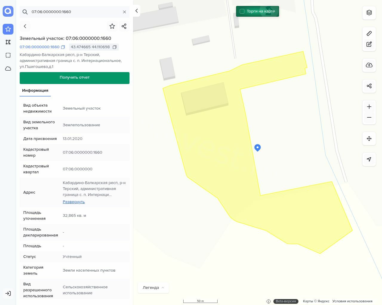 Земельный участок 32 865 кв.м. кадастровый номер 07:06:0000000:1660