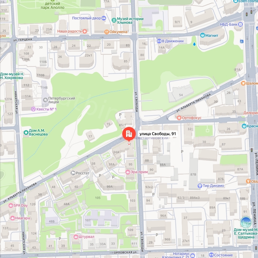 Адрес: Кировская обл., г. Киров, Первомайский р-н, ул. Свободы, д. 91, пом. 1011