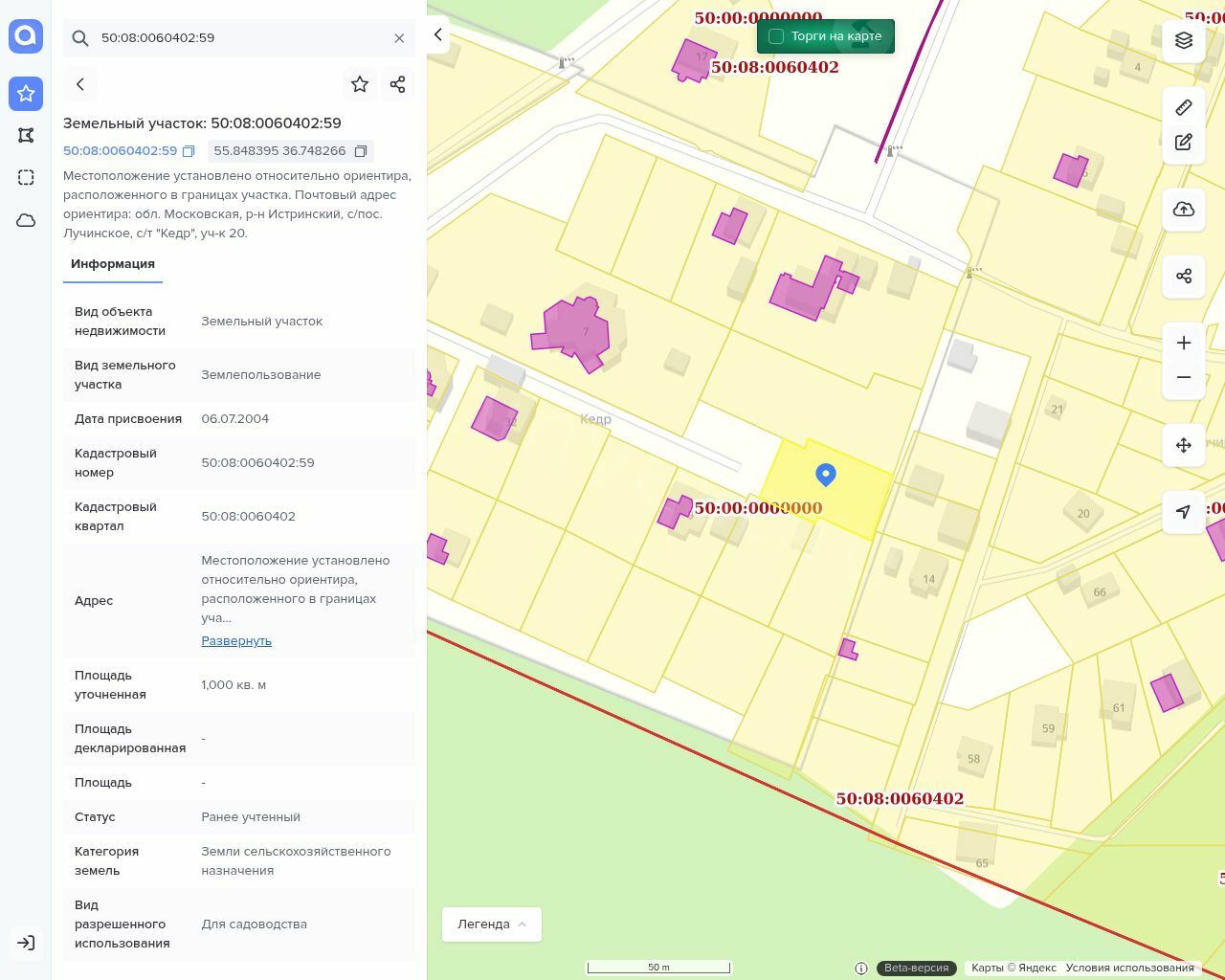 Земельный участок, кадастровый номер 50:08:0060402:59,