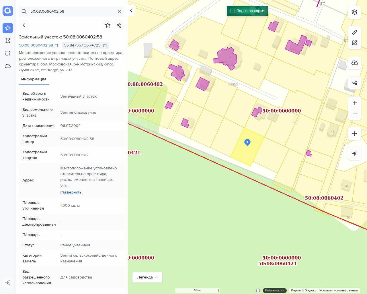 Земельный участок, кадастровый номер 50:08:0060402:58,