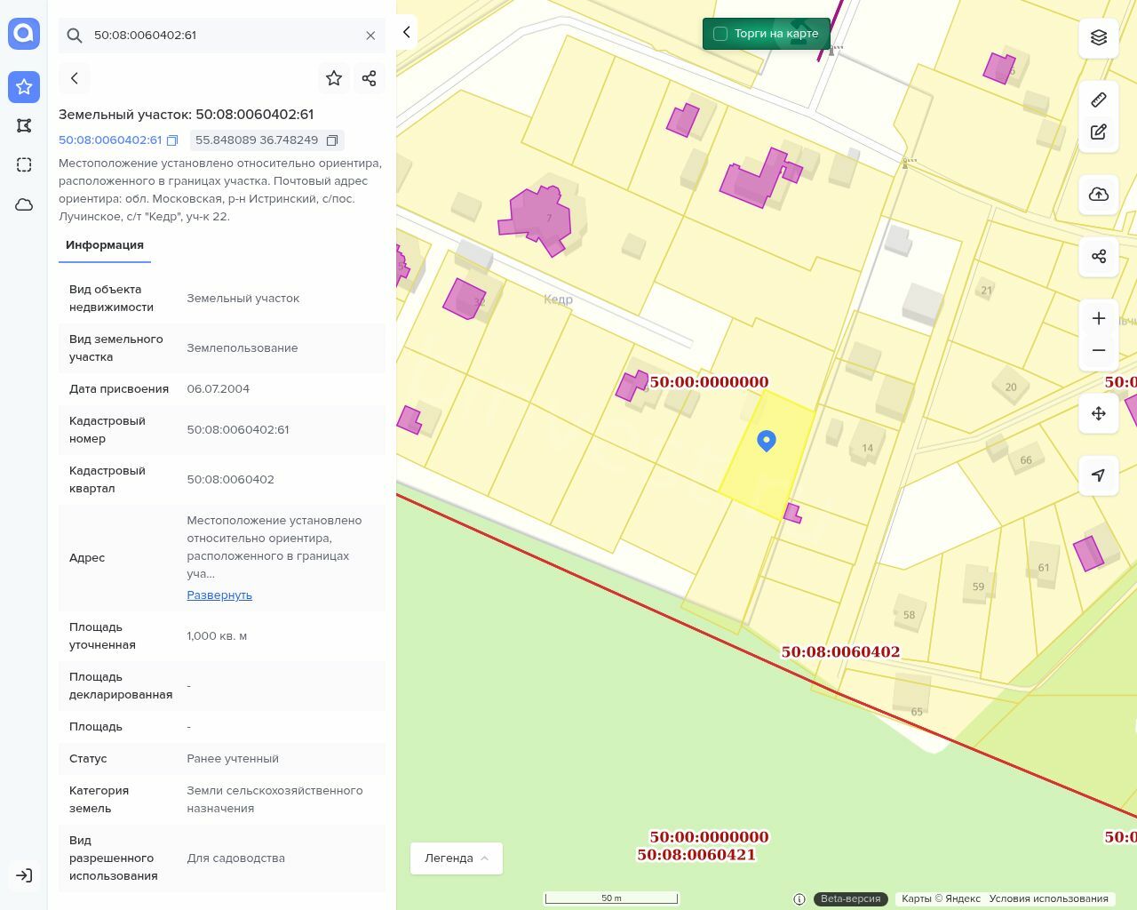 Земельный участок, кадастровый номер 50:08:0060402:61,