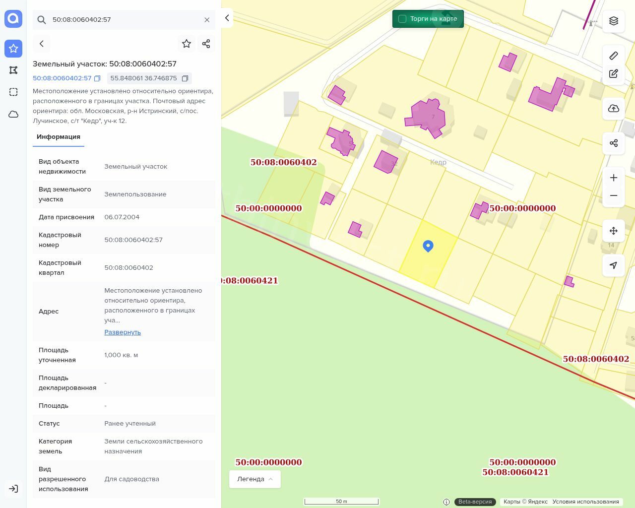 Земельный участок, кадастровый номер 50:08:0060402:57,