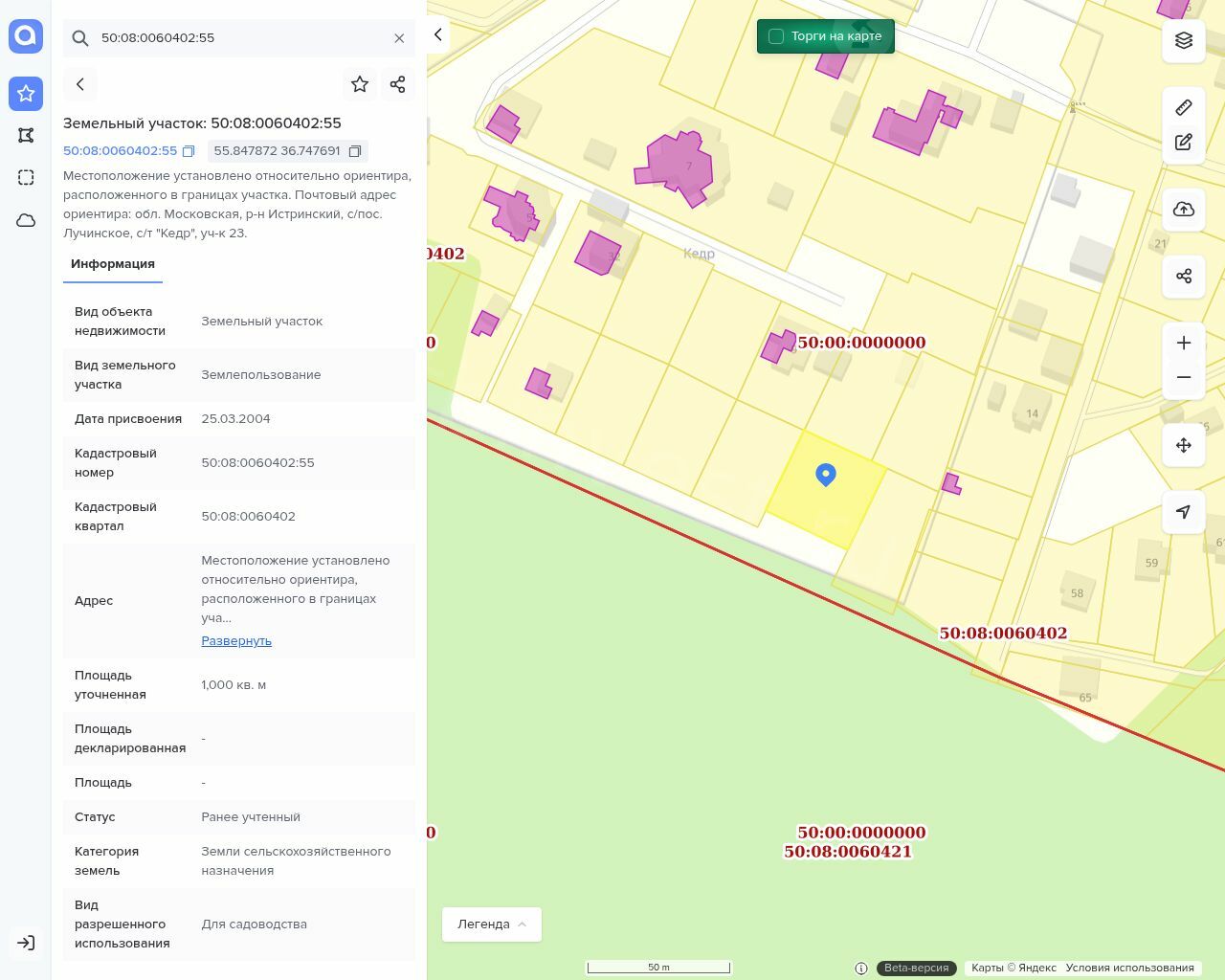 Земельный участок, кадастровый номер 50:08:0060402:55,