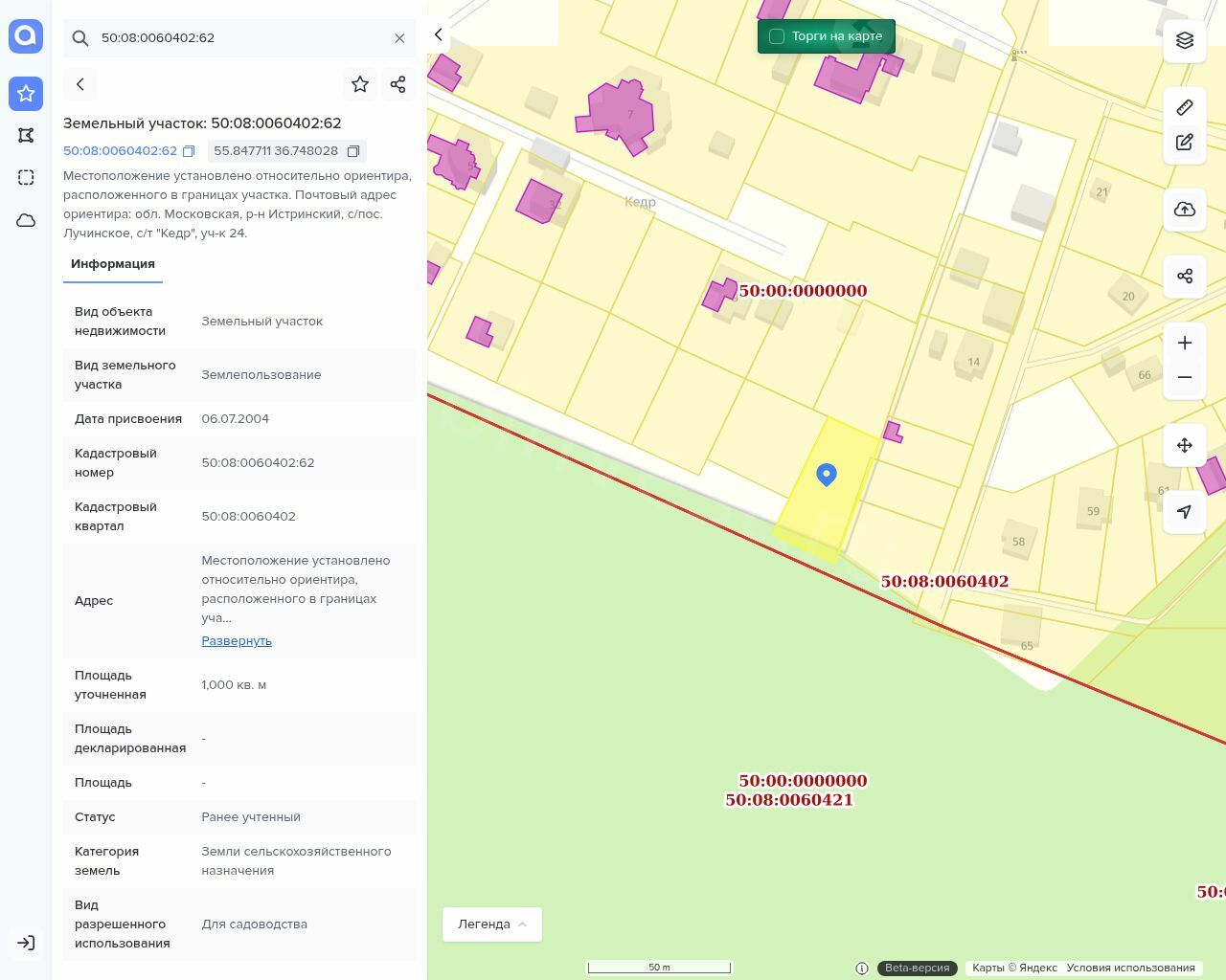 Земельный участок, кадастровый номер 50:08:0060402:62,