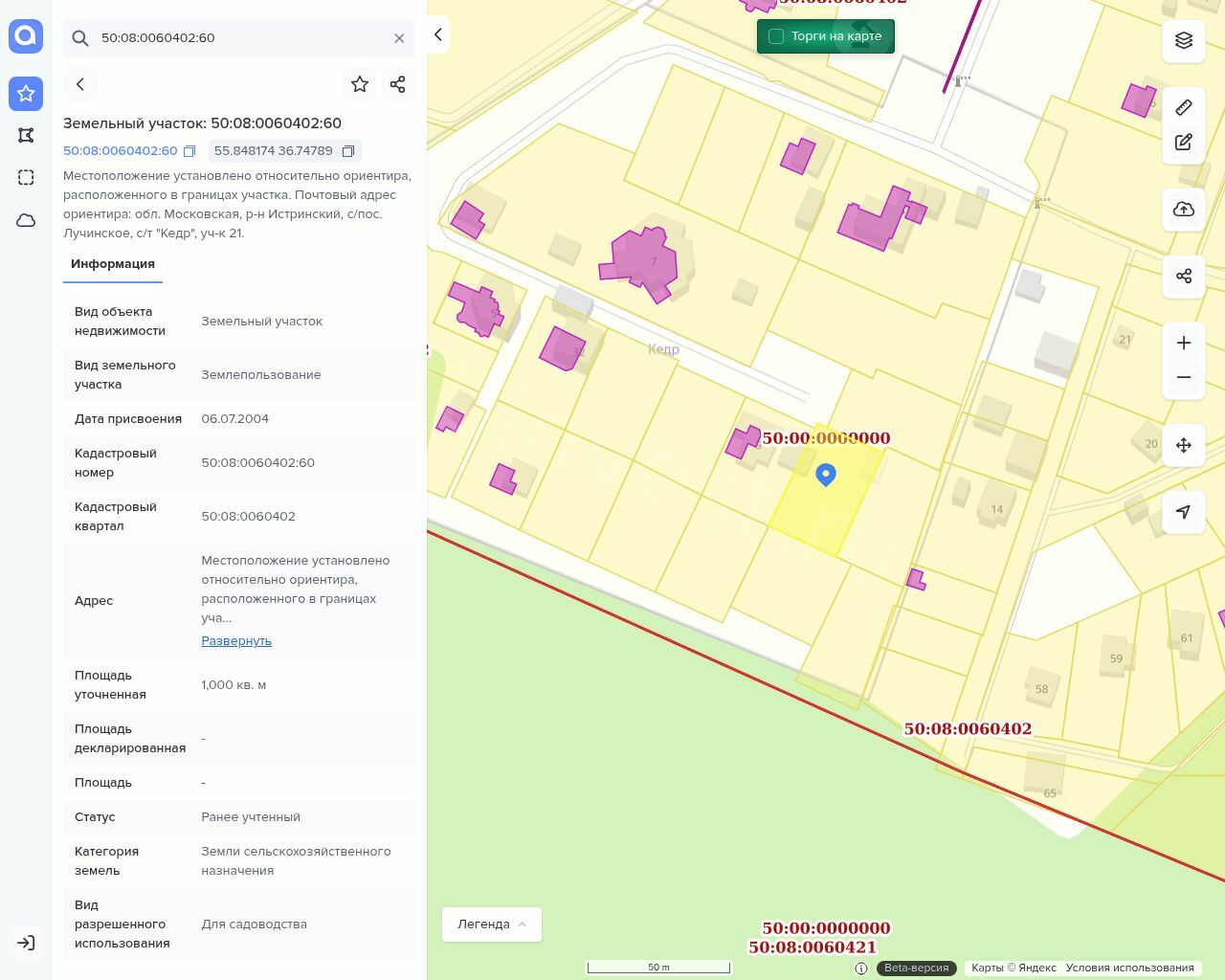 Земельный участок, кадастровый номер 50:08:0060402:60,