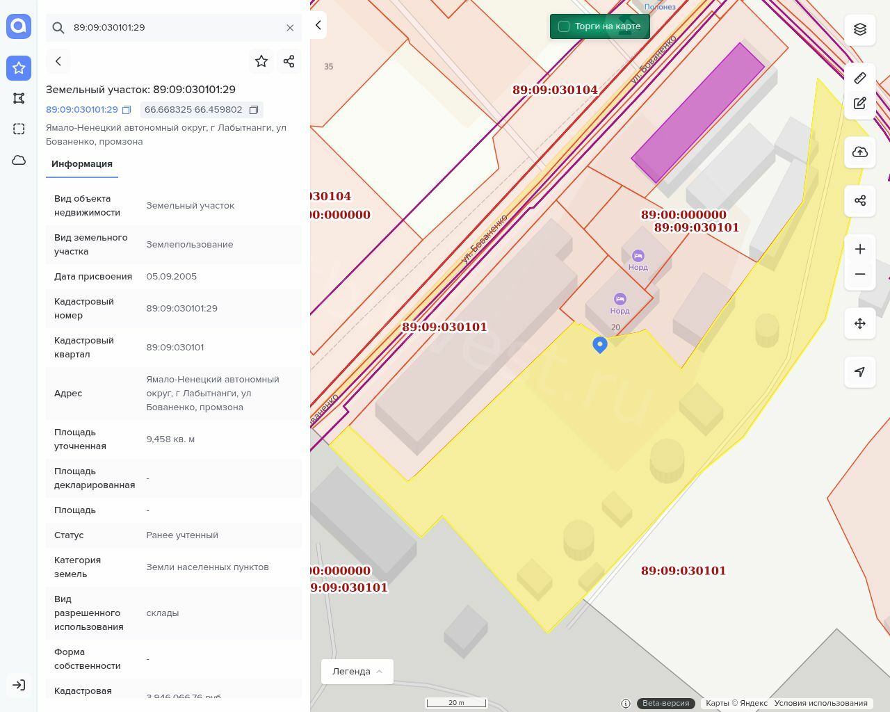 Земельный участок, площадь-9 458 +/- 67,6 кв.м, кад. номер- 89:09:030101:29