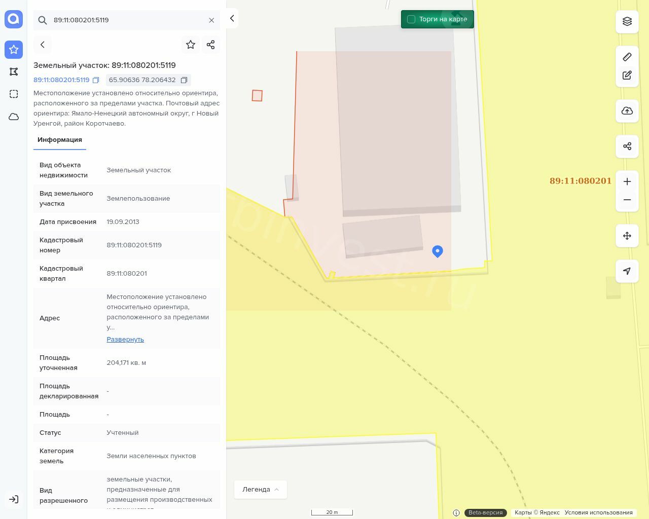 Земельный участок, площадь-204 171 +/- 405 кв.м, кад. номер-89:11:080201:5119