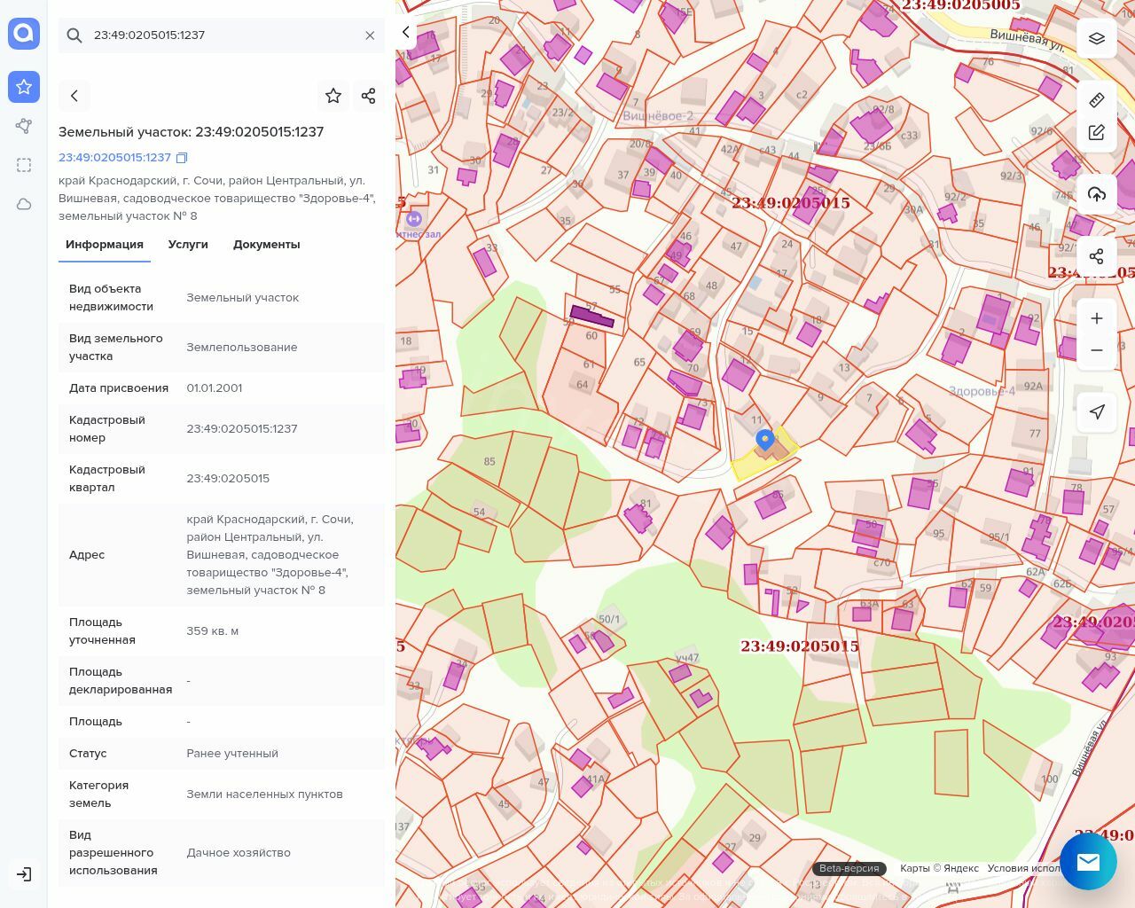 Земельный участок, площадью: 359 кв.м, кадастровый номер: 23:49:0205015:1237