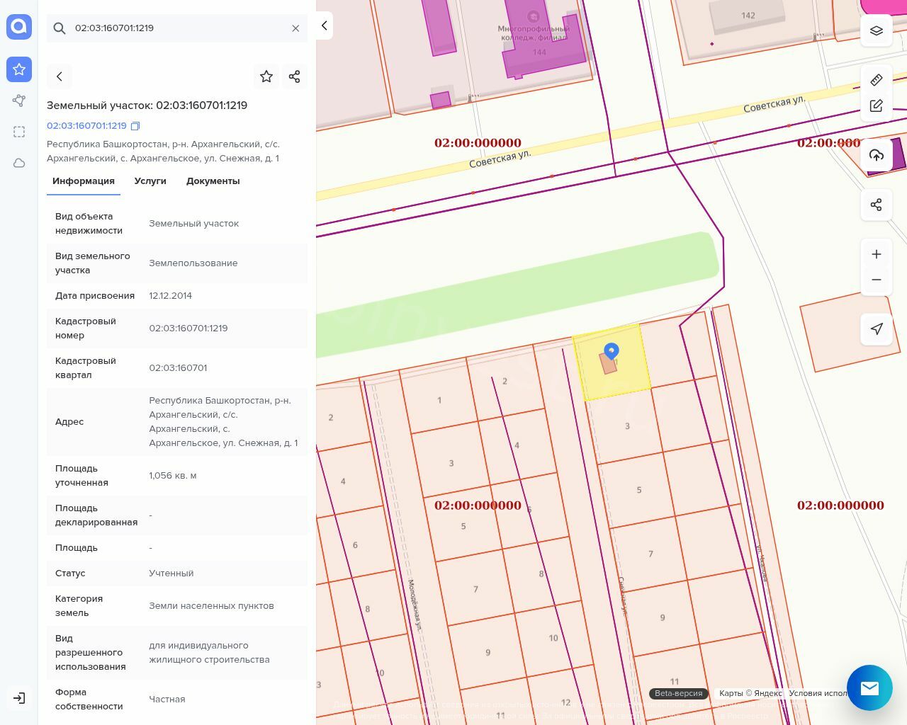 Земельный участок, площадью 1056 кв.м., кадастровый номер 02:03:160701:1219