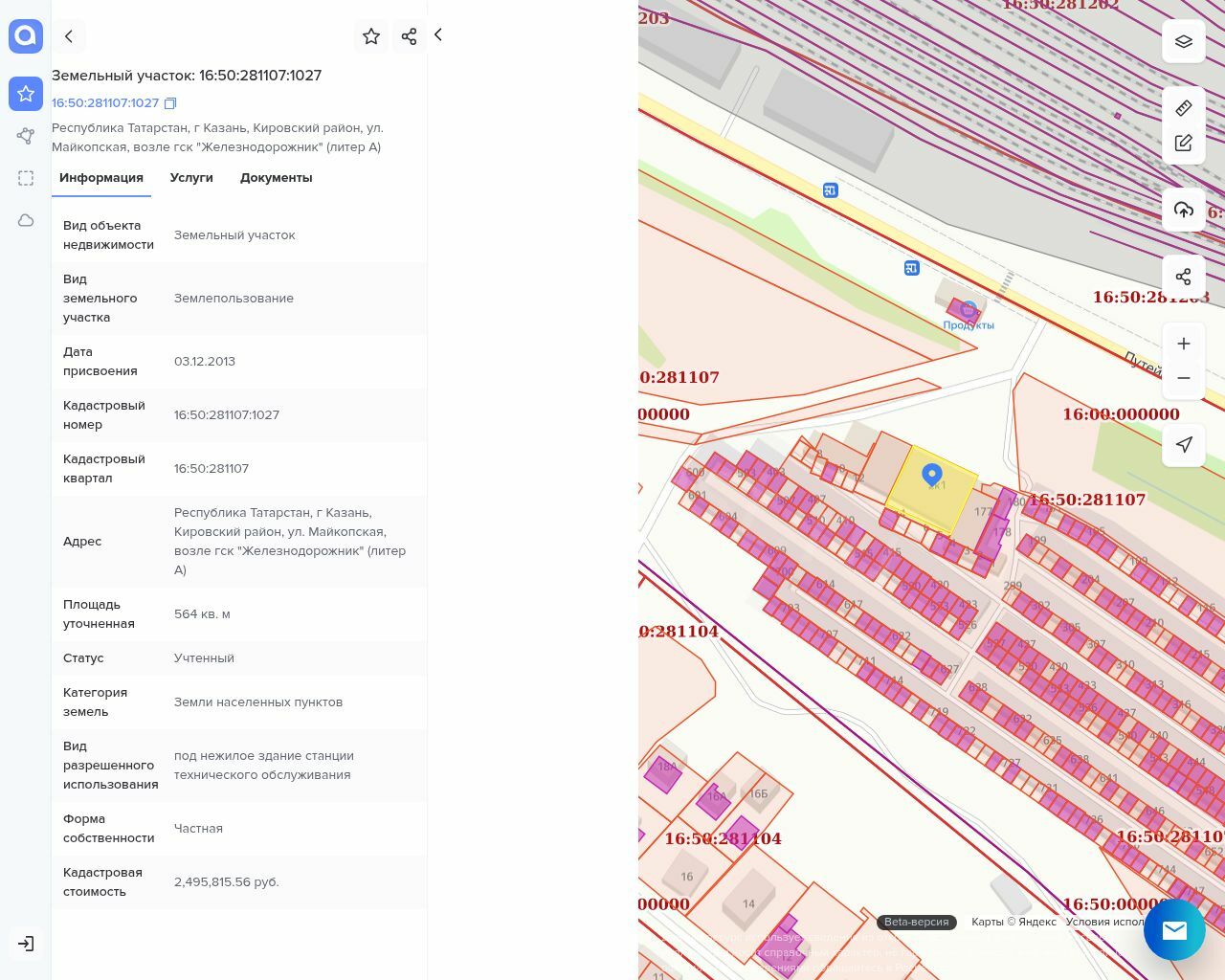 Земельный участок 564 кв.м., кад.№16:50:281107:1027
