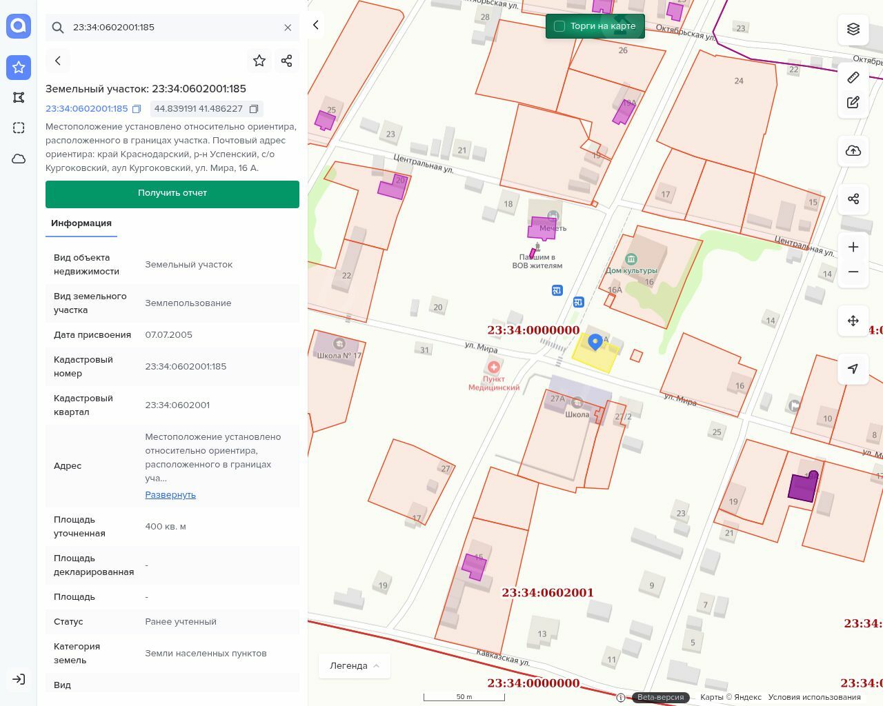 Лот №1. Нежилое здание магазина, площадь 163.9 кв.м., кадастровый номер 23:34:0602001:402, расположенное на земельном участке, кадастровый номер: 23:34:0602001:185, площадью 400 кв.м.,