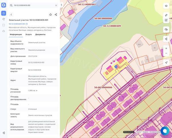 Кадастровый номер 50:12:0080409:491 – 1388 кв.м.,